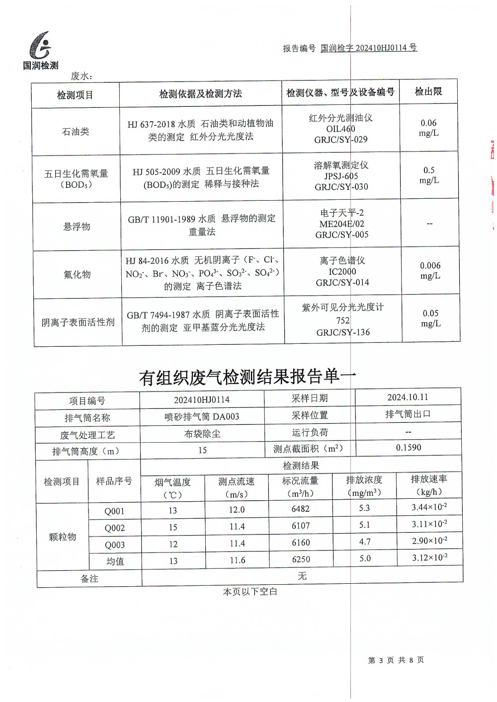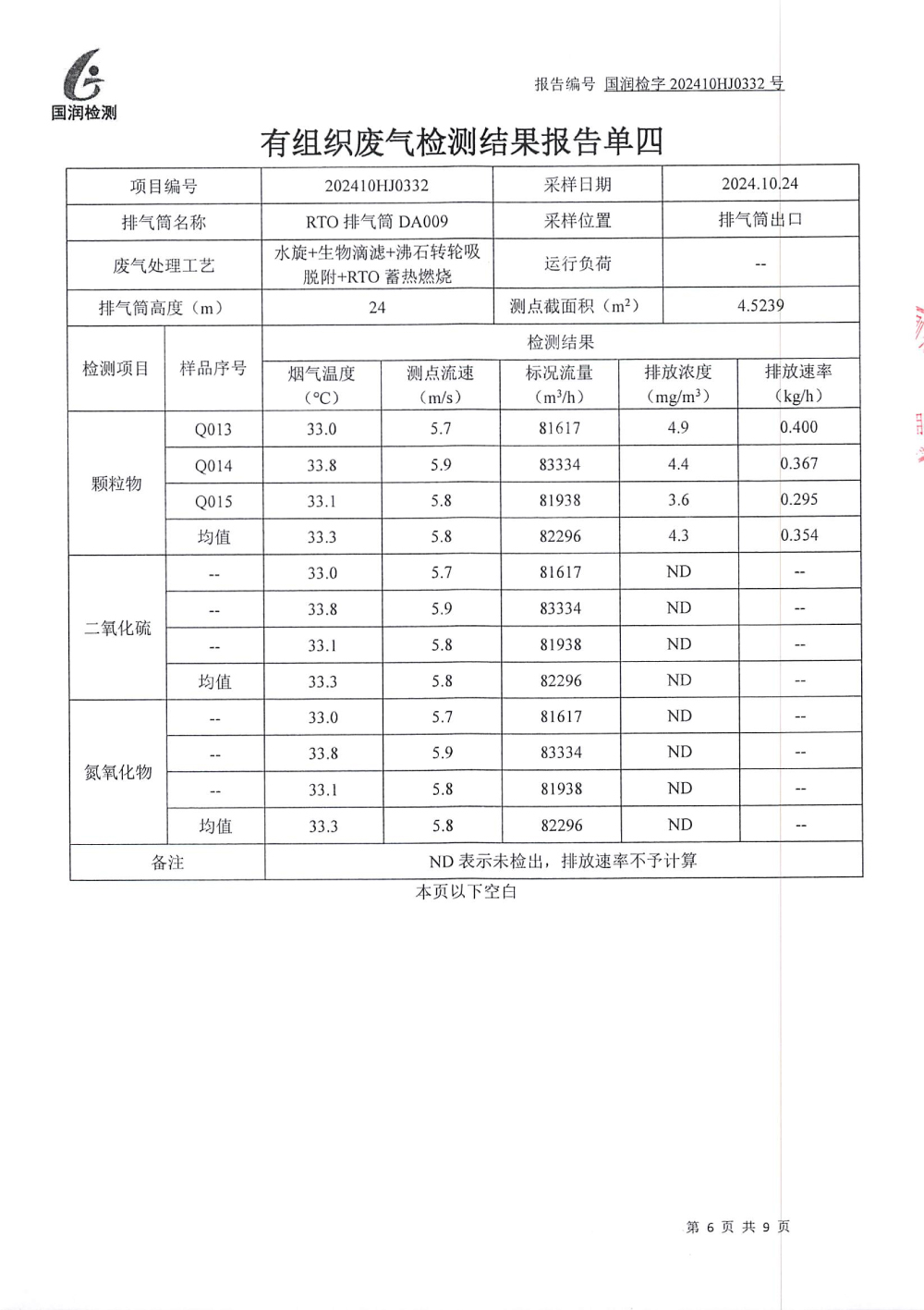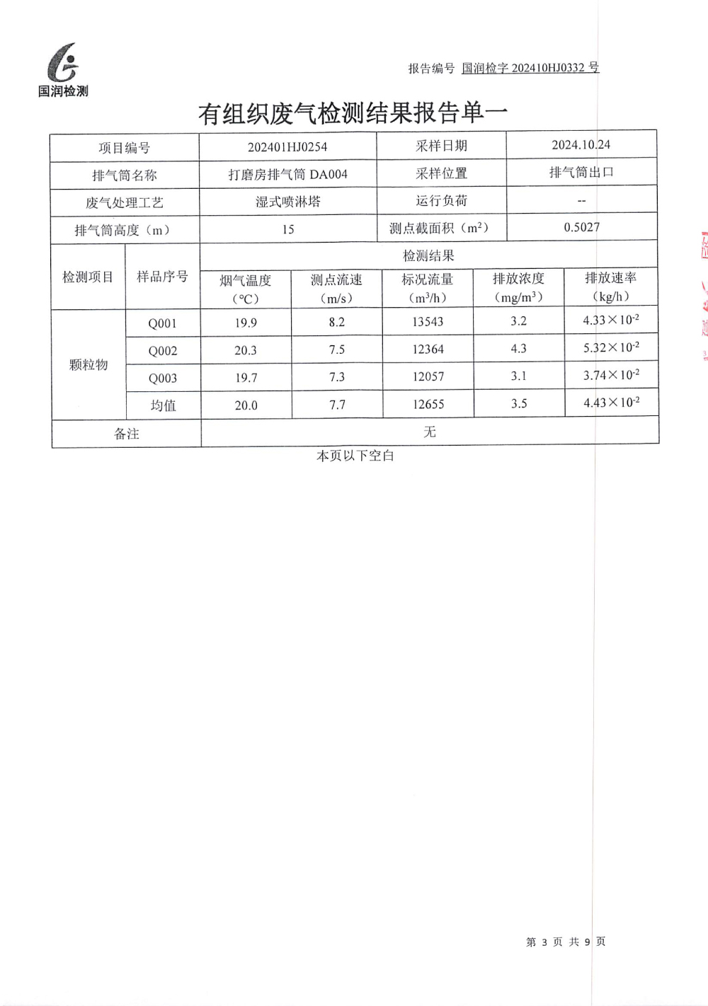 泰安啟程車輪制造有限公司2024年10月份環(huán)境污染物排放檢測報告