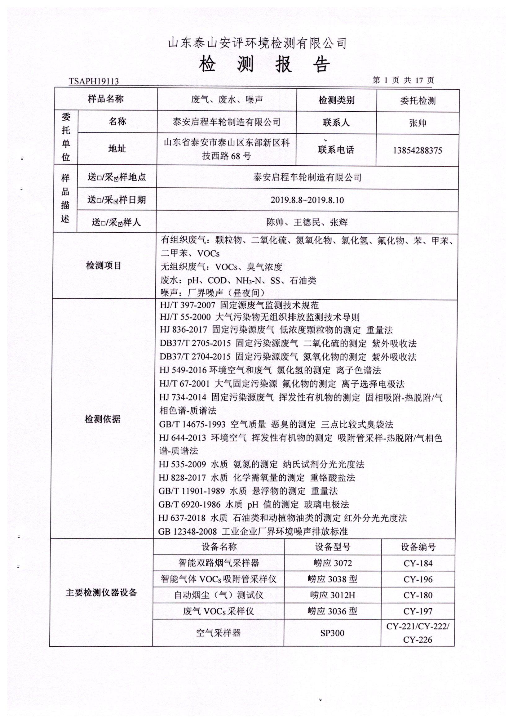 根據(jù)《中華人民共和國環(huán)境保護(hù)法》、《企事業(yè)單位環(huán)境信息公開辦法》有關(guān)規(guī)定,現(xiàn)將泰安啟程車輪制造有限公司環(huán)境信息公開如下: