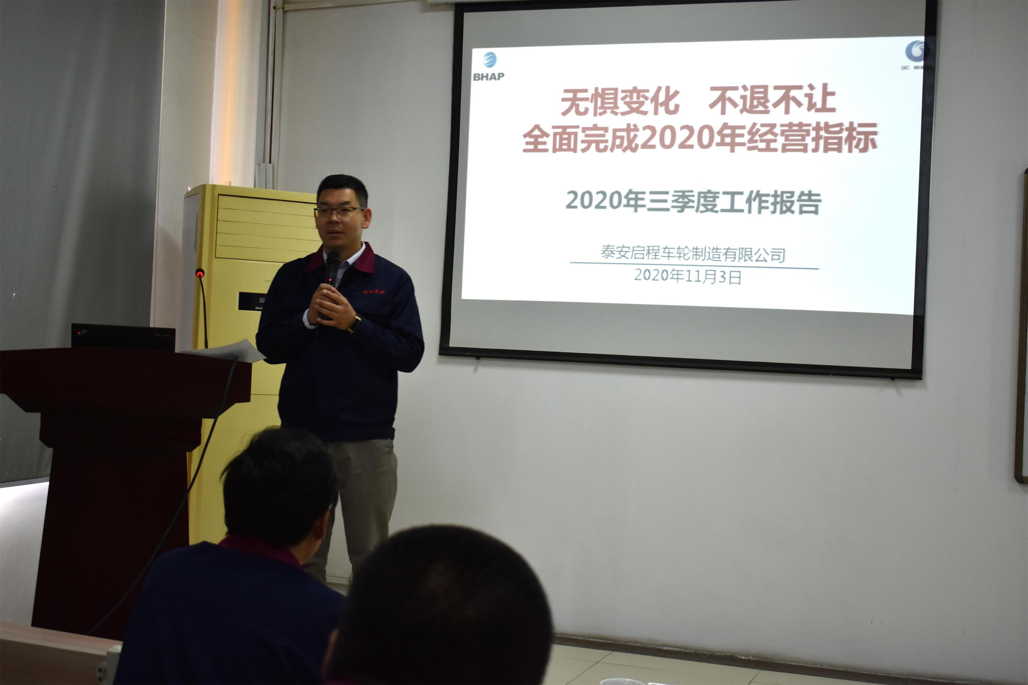 海納川市場開發(fā)部總經(jīng)理、泰安啟程執(zhí)行董事馬磊做了講話,他就泰安啟程結(jié)合當前的情況、未來的發(fā)展,如何做的更好,如何使企業(yè)永續(xù)經(jīng)營,馬磊執(zhí)行董事與大家進行了分析,提出了工作要求,一是認清形勢,正視挑戰(zhàn)。面對未來的2025年,面對未來發(fā)展要積極思考,泰安啟程全體員工要樹立勇于挑戰(zhàn)的心態(tài),要把握機遇,把握住企業(yè)的命運,開展“生產(chǎn)自救”;二是制定戰(zhàn)略,應對挑戰(zhàn)。在十三五即將完美收官、十四五即將來臨的十字路口,面對復雜的發(fā)展環(huán)境和形勢,泰安啟程要從EHS管理、成本、產(chǎn)能、核心競爭力四個方面制定發(fā)展戰(zhàn)略,做好準備,制定好發(fā)展戰(zhàn)略,應對挑戰(zhàn)。三是持續(xù)發(fā)展,永續(xù)經(jīng)營。泰安啟程要從三個層面做好永續(xù)經(jīng)營,即樹立做企業(yè)的意識、要有做好企業(yè)的心態(tài)、要挑戰(zhàn)困難的永續(xù)經(jīng)營信念。馬磊執(zhí)行董事強調(diào),所有啟程員工在第四季度的工作中務必要勇?lián)姑、盡責擔當,認清啟程當前形勢,敢于挑戰(zhàn)當前面臨風險,克服所有不利因素和壓力,確保完成四個“不退不讓”目標任務,全力打贏“十三五”收官之戰(zhàn)!