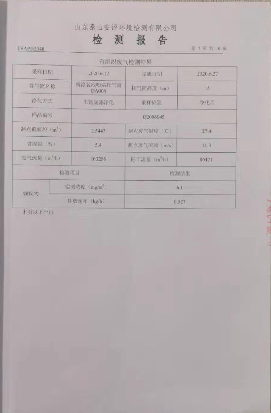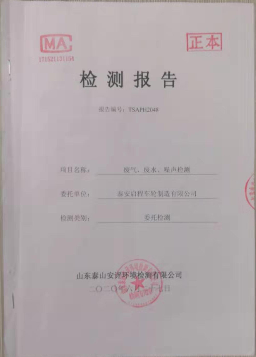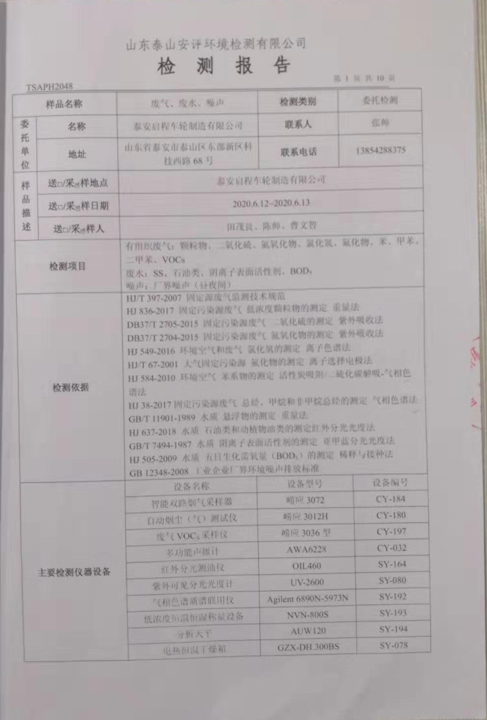 泰安啟程車(chē)輪制造有限公司2020年6月份環(huán)境污染物排放檢測(cè)報(bào)告