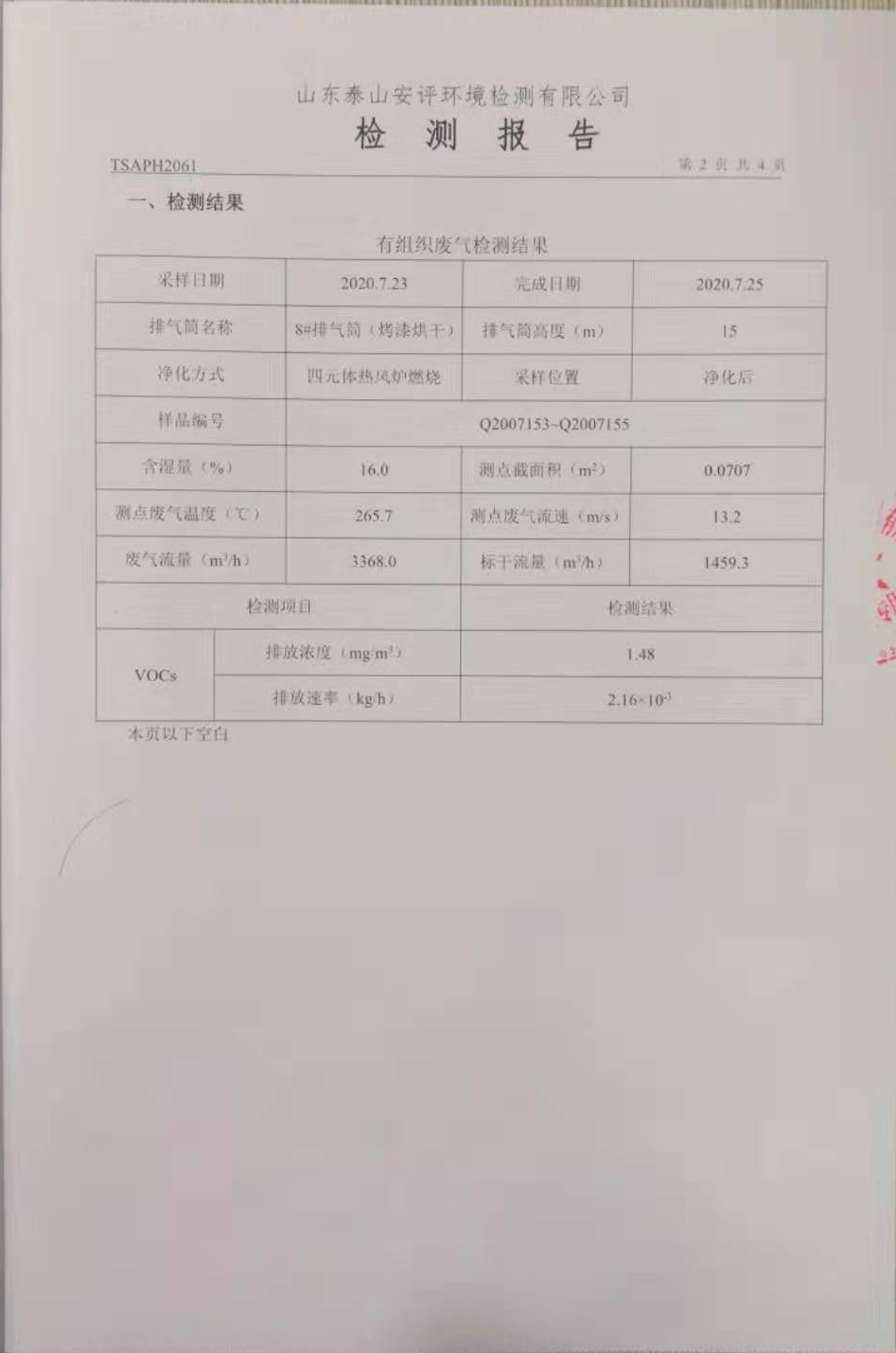 泰安啟程車輪制造有限公司2020年7月份環(huán)境污染物排放檢測報告