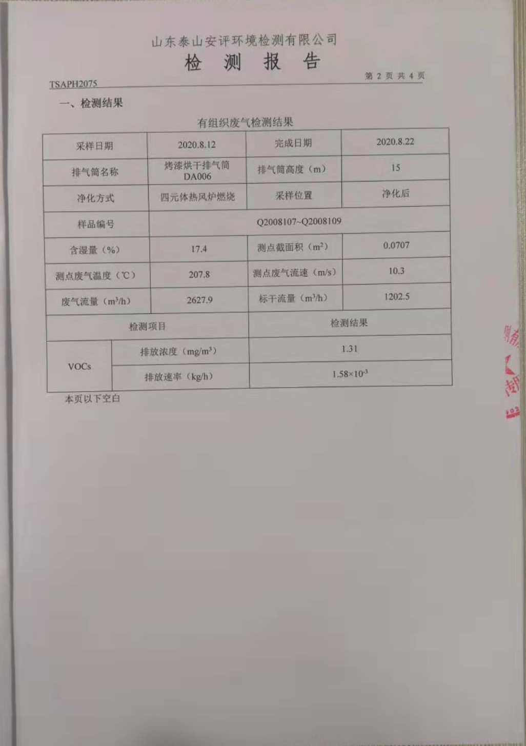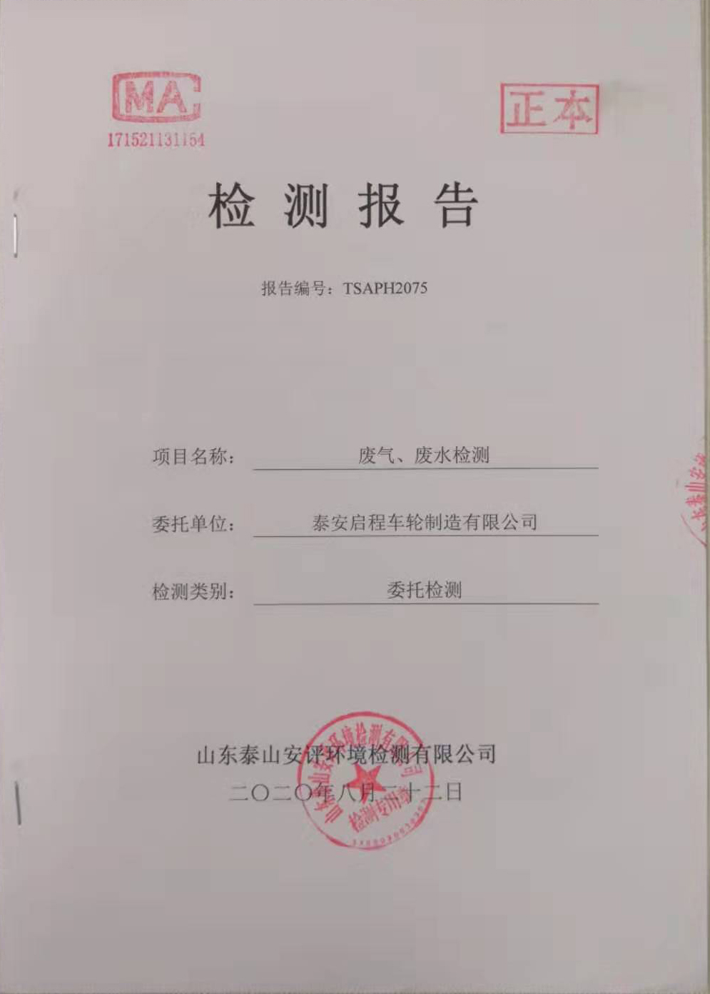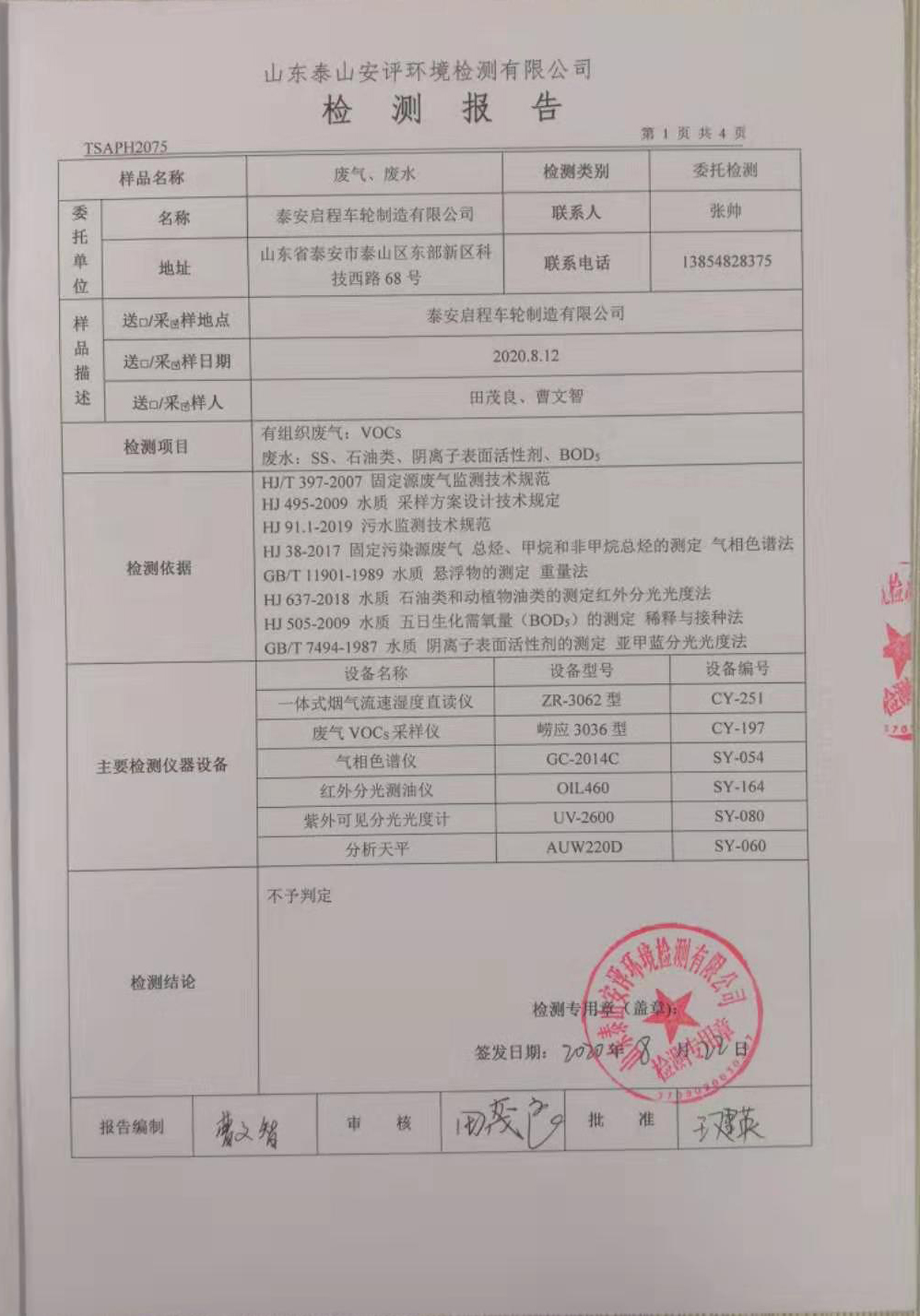 泰安啟程車輪制造有限公司2020年8月份環(huán)境污染物排放檢測報告
