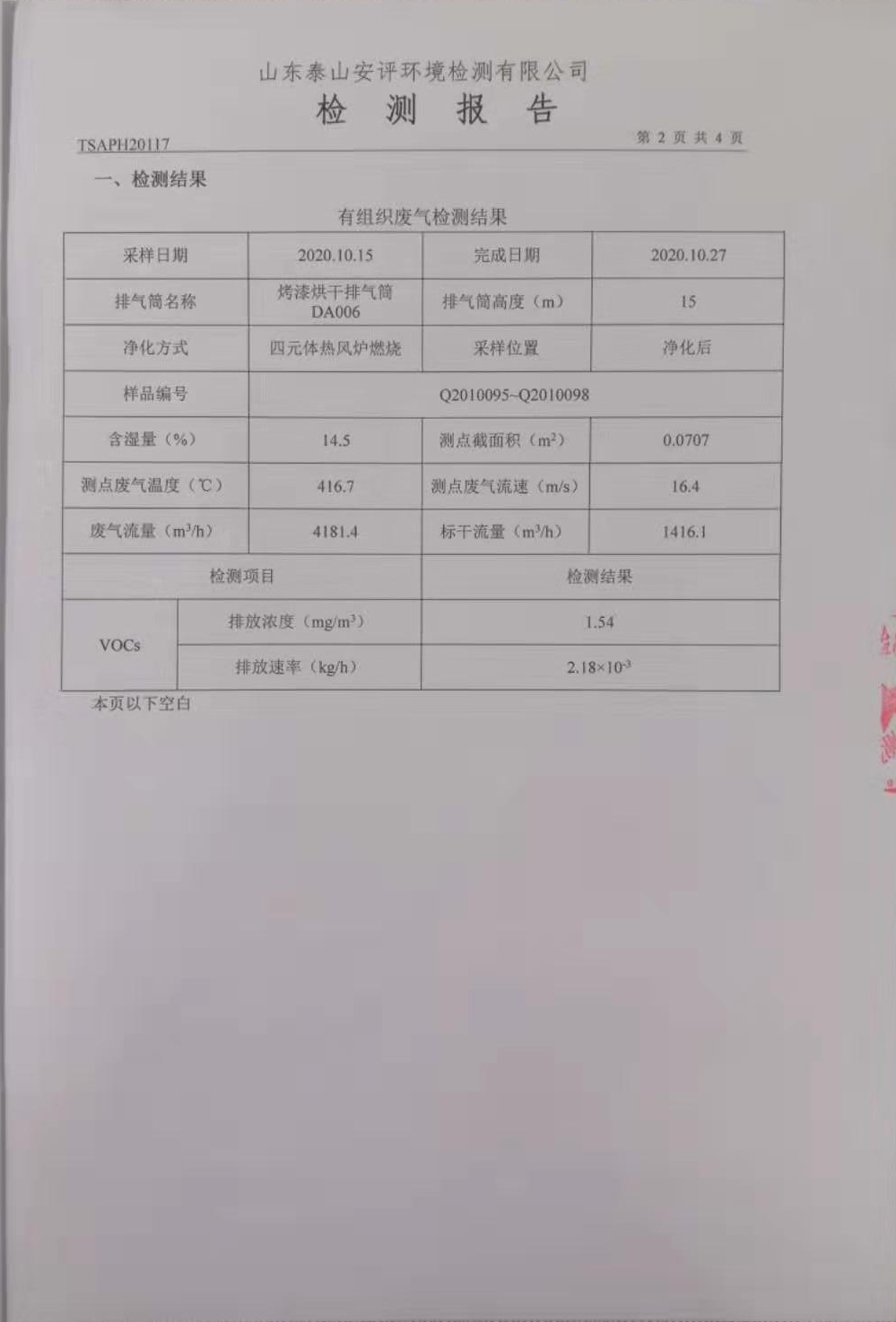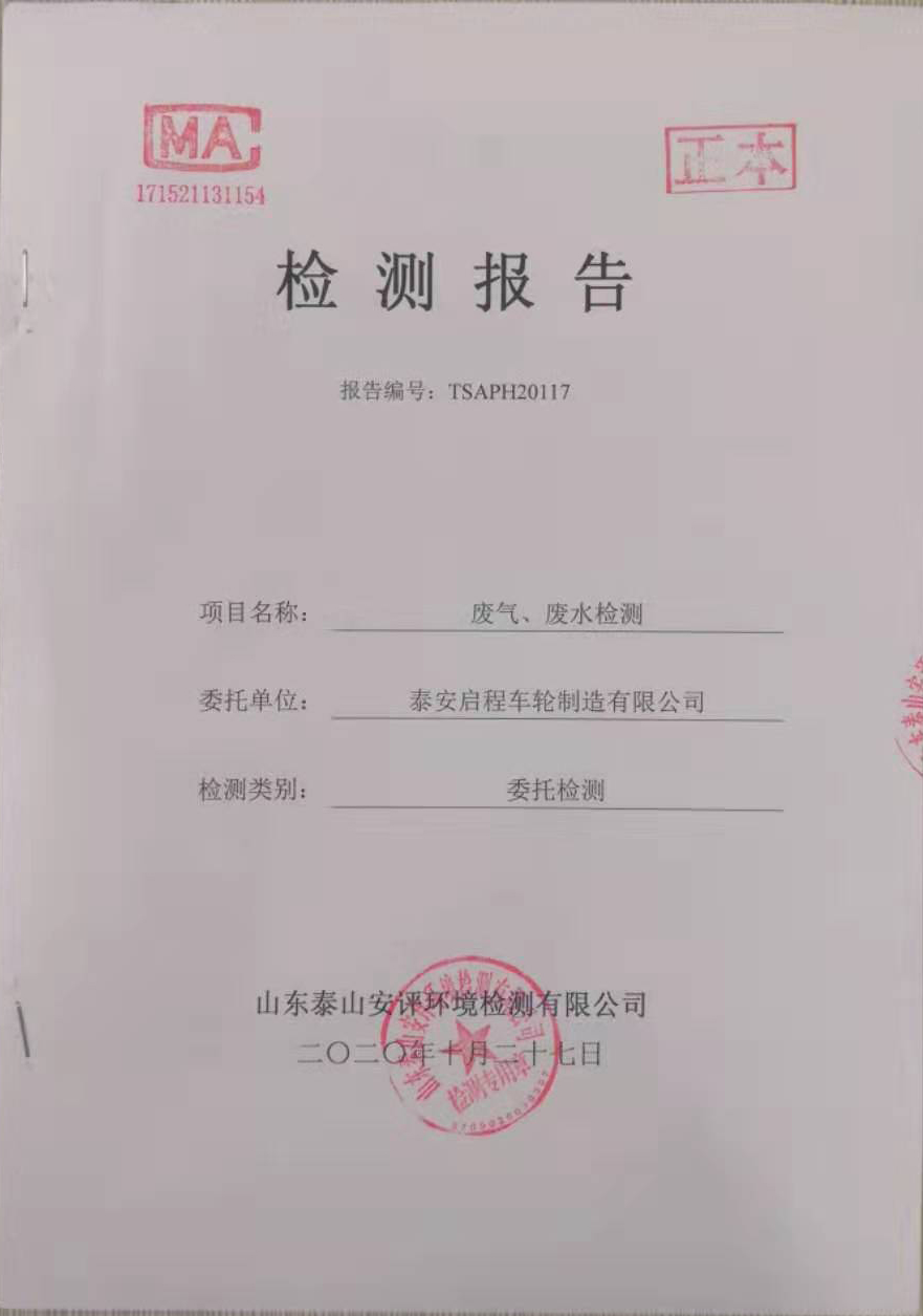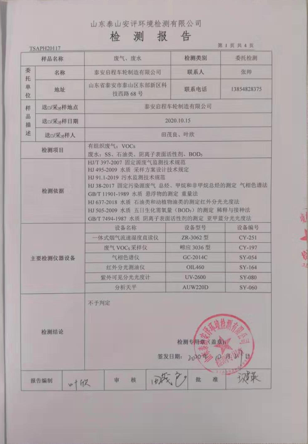 泰安啟程車輪制造有限公司2020年10月份環(huán)境污染物排放檢測報(bào)告