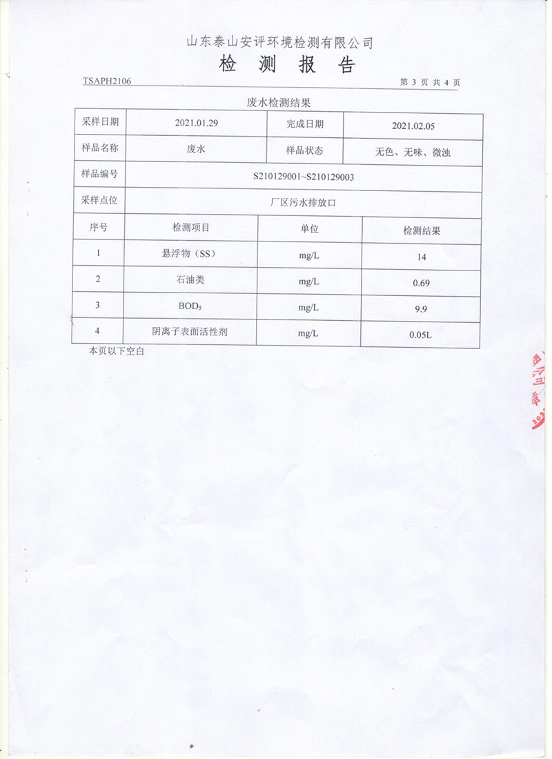 泰安啟程車輪制造有限公司2021年1月份環(huán)境污染物排放檢測報告
