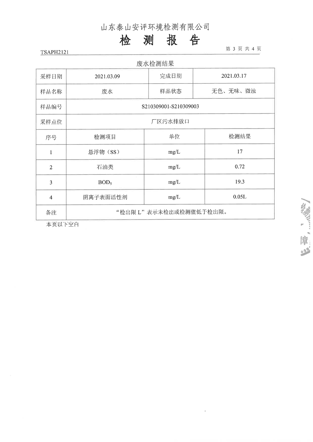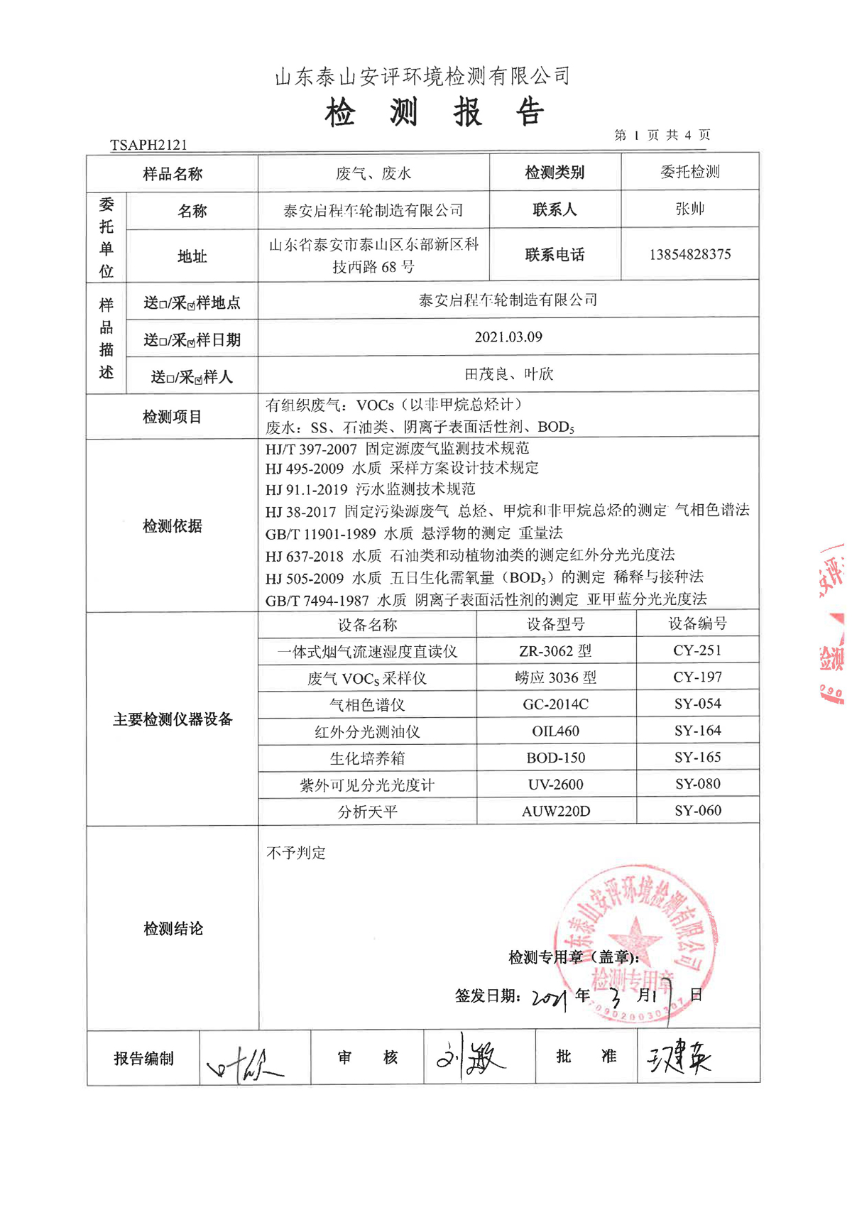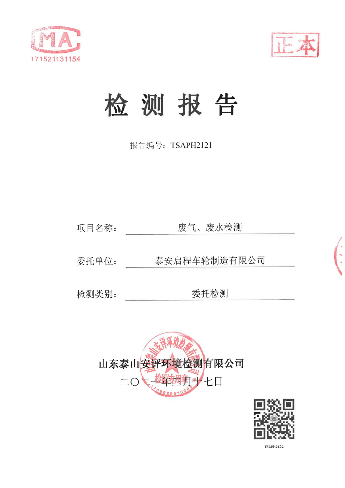 泰安啟程車輪制造有限公司2021年3月份環(huán)境污染物排放檢測報告