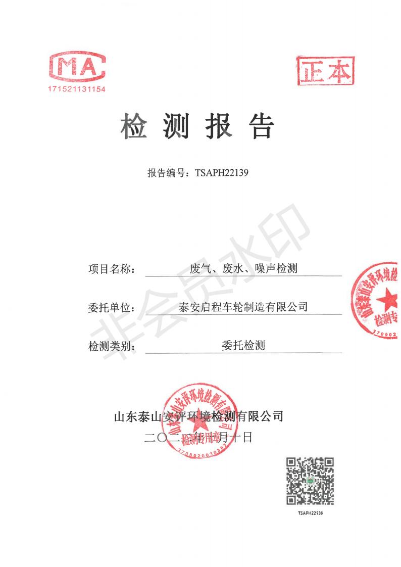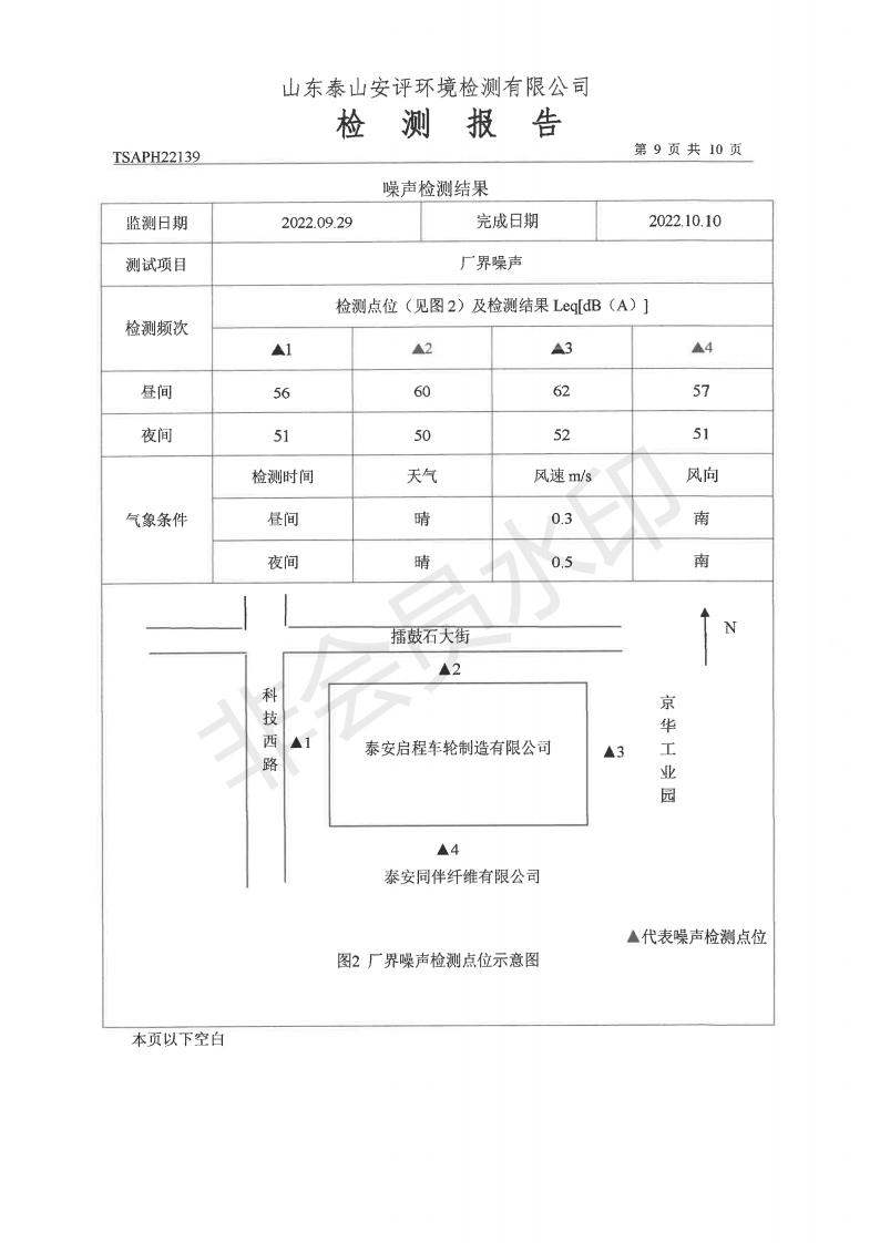 泰安啟程車輪制造有限公司2022年9月份環(huán)境污染物排放檢測報(bào)告