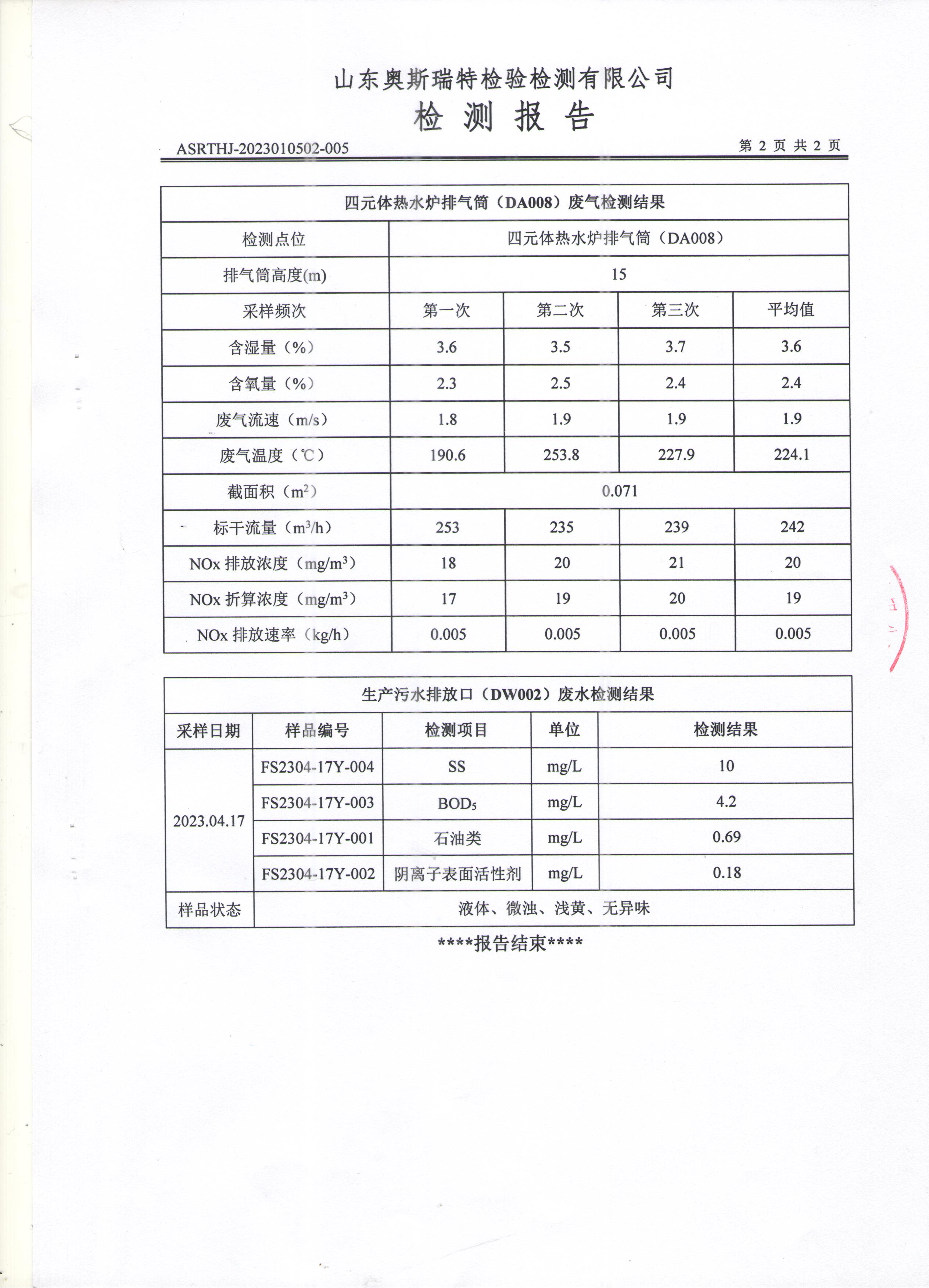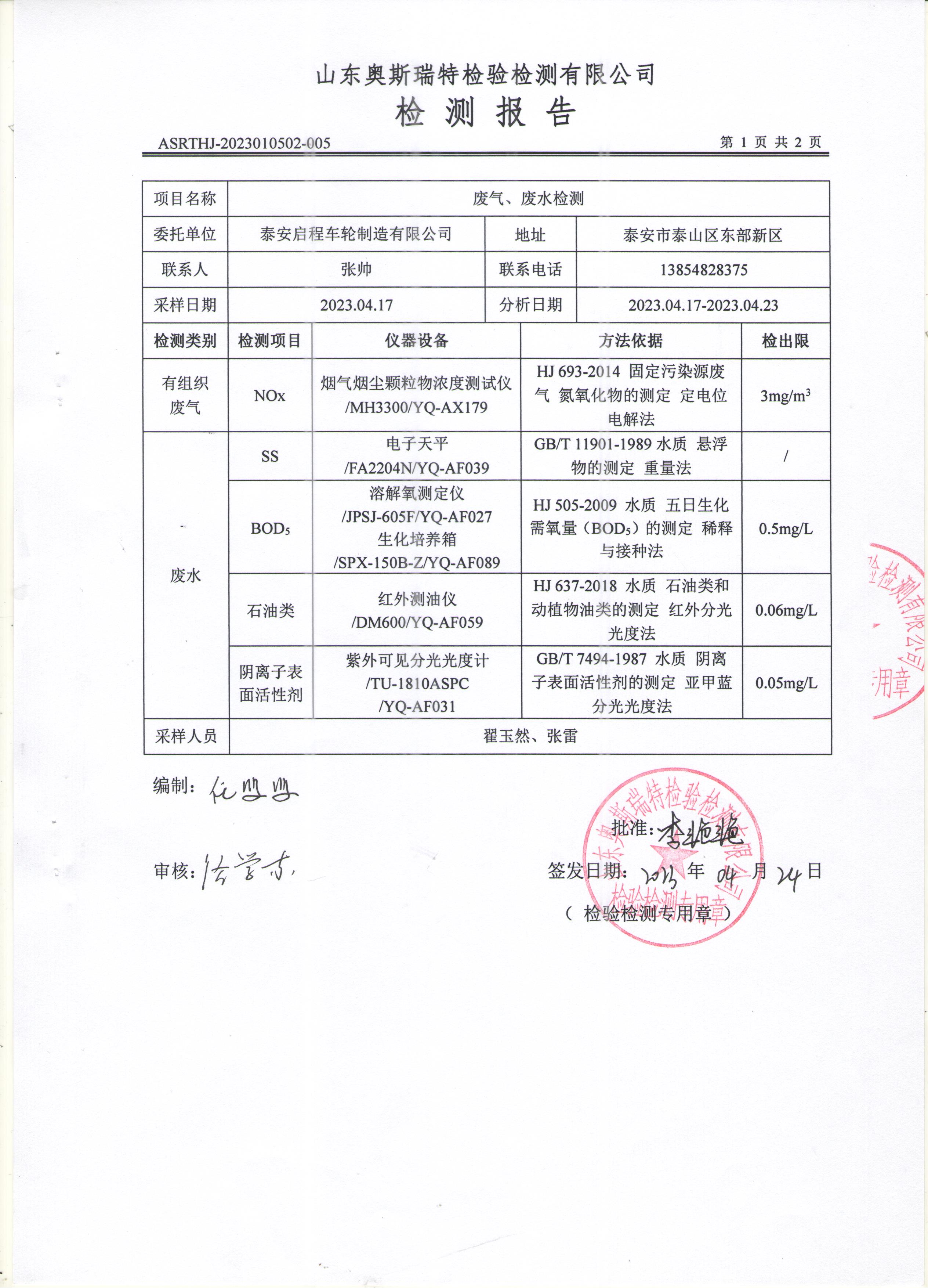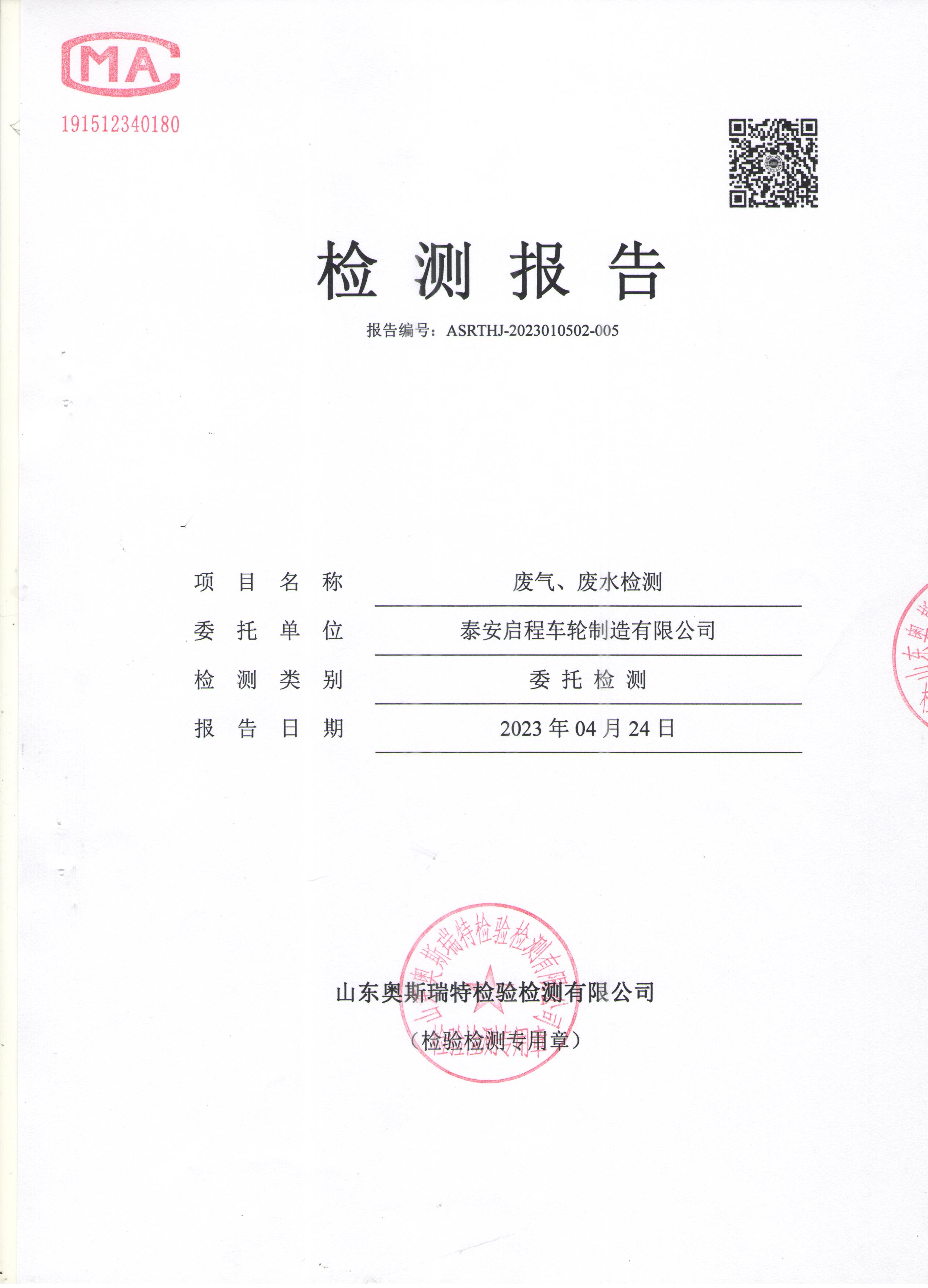 泰安啟程車輪制造有限公司2023年4月份環(huán)境污染物排放檢測報告