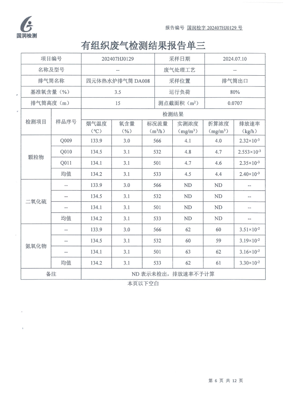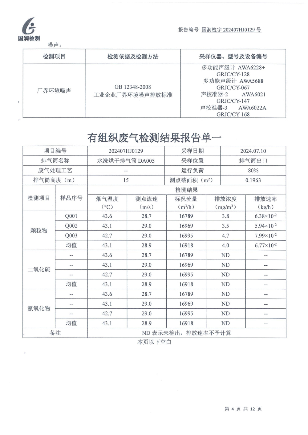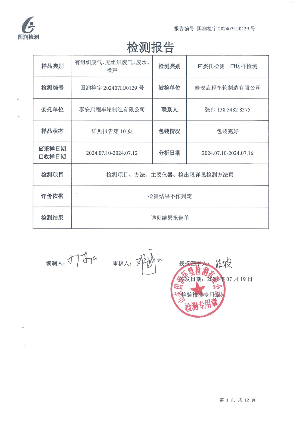 泰安啟程車輪制造有限公司2024年7月份環(huán)境污染物排放檢測報(bào)告