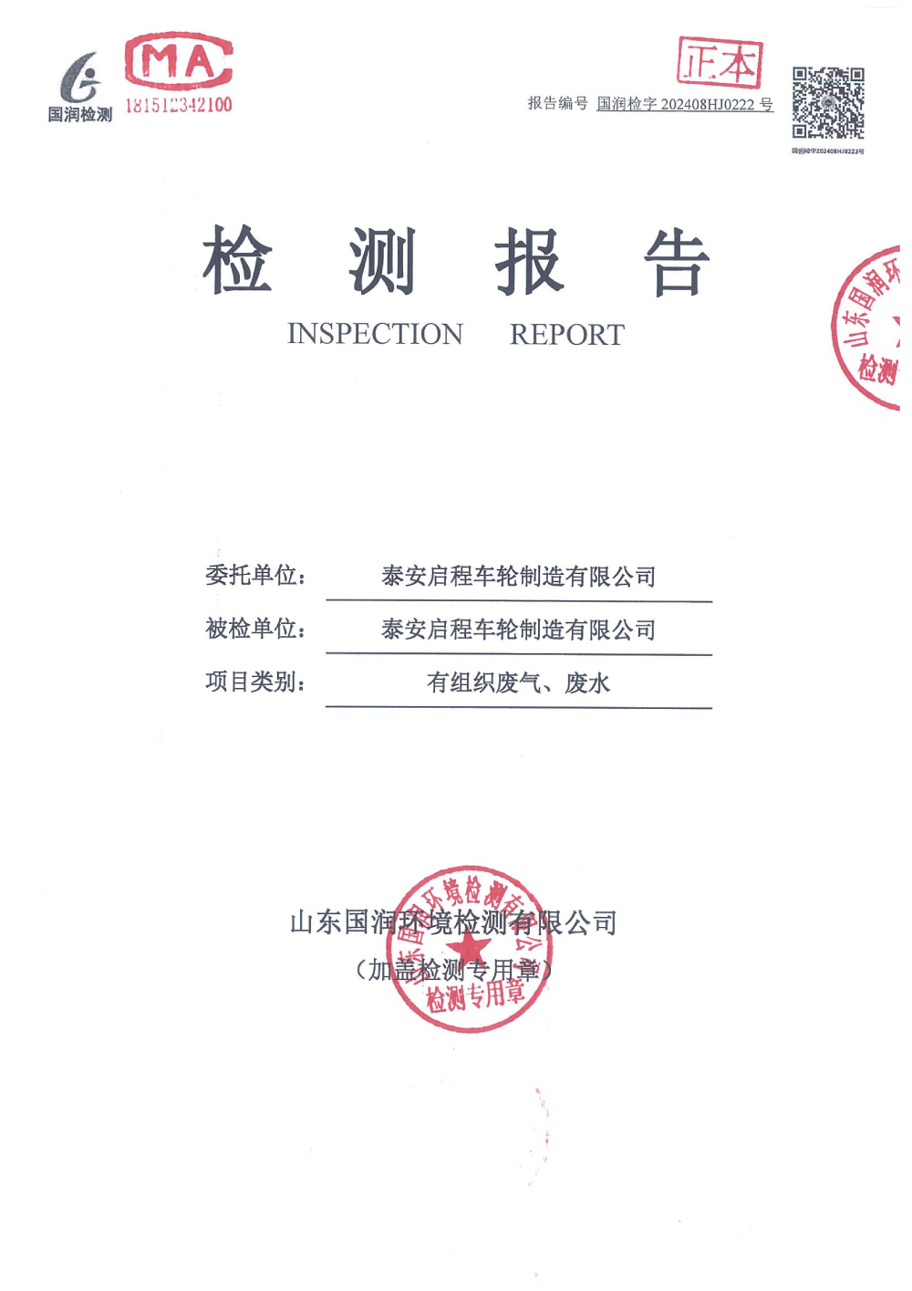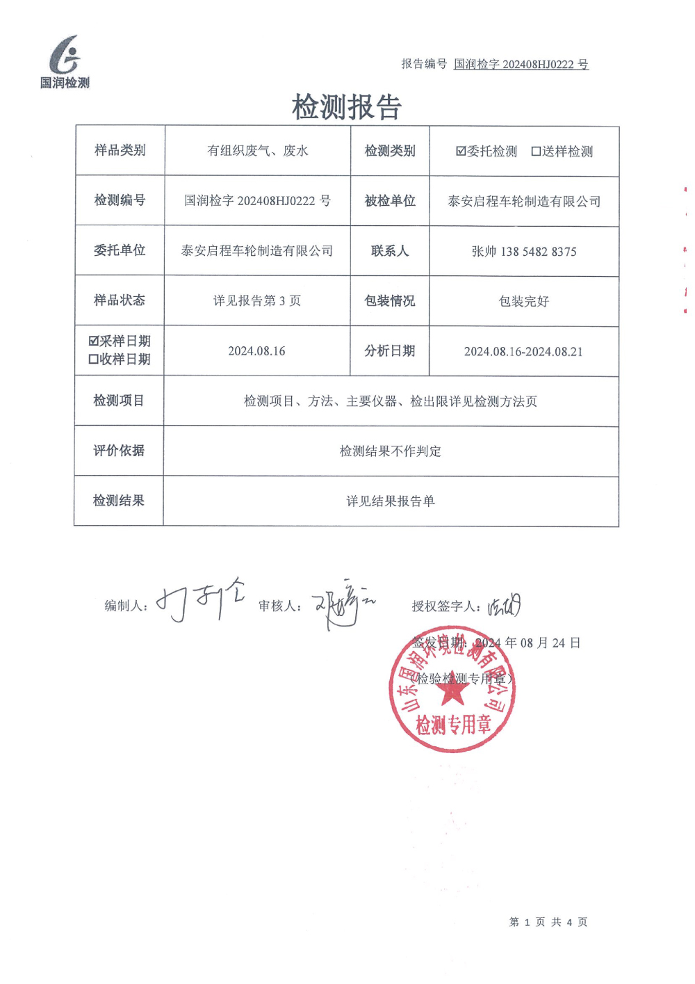 泰安啟程車輪制造有限公司2024年8月份環(huán)境污染物排放檢測(cè)報(bào)告