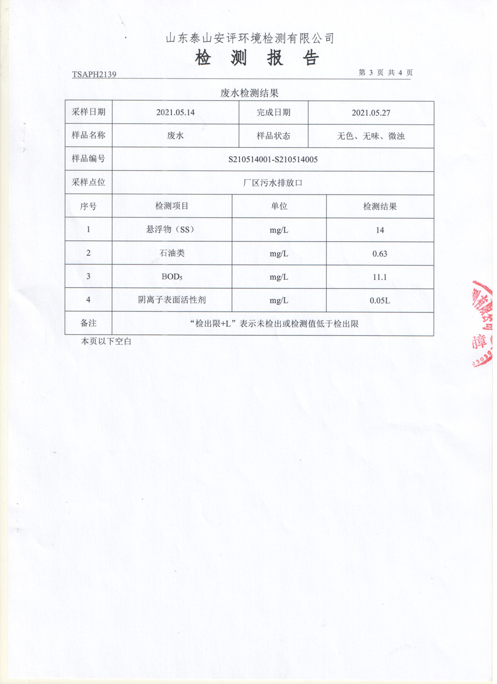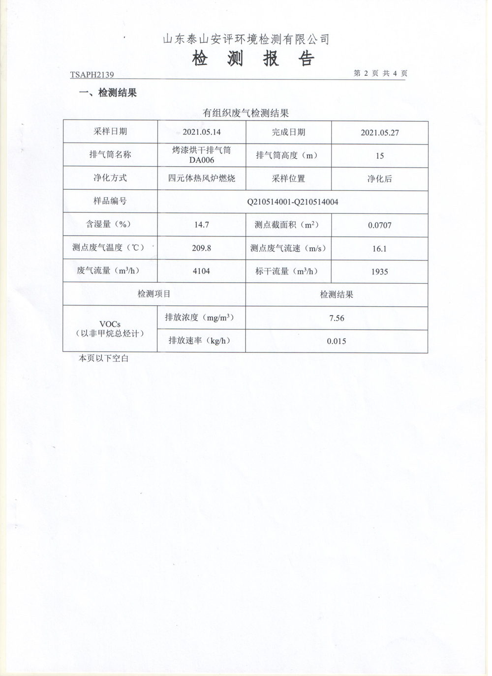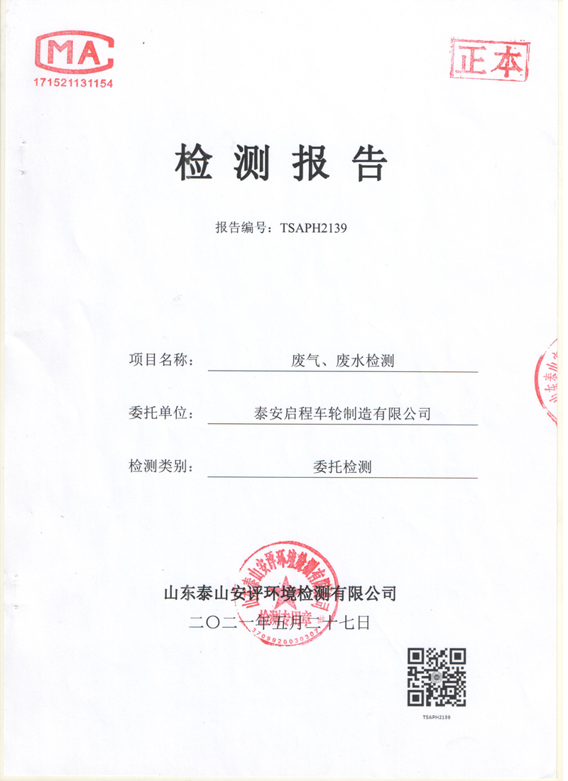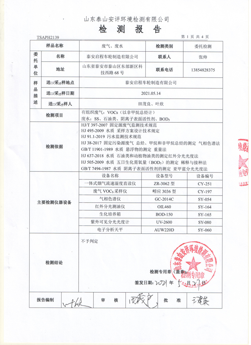 泰安啟程車輪制造有限公司2021年5月份環(huán)境污染物排放檢測報告