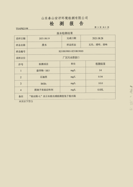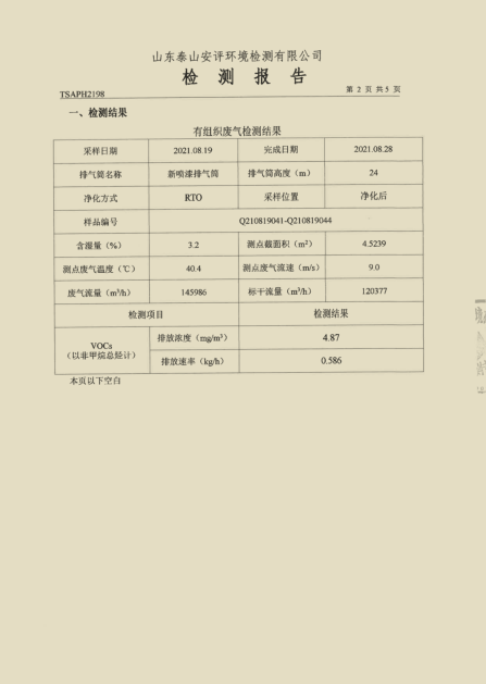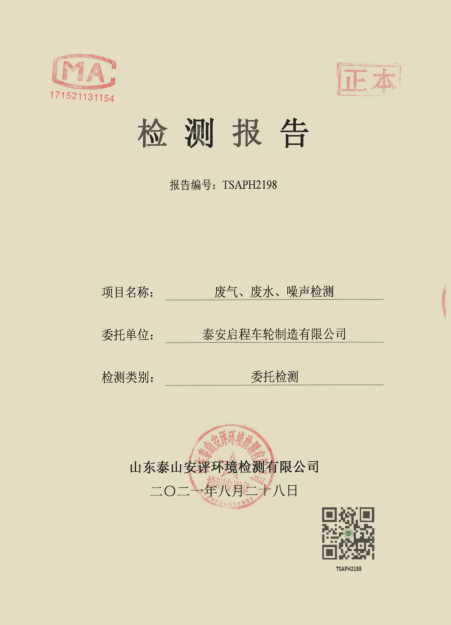 泰安啟程車輪制造有限公司2021年8月份環(huán)境污染物排放檢測報(bào)告