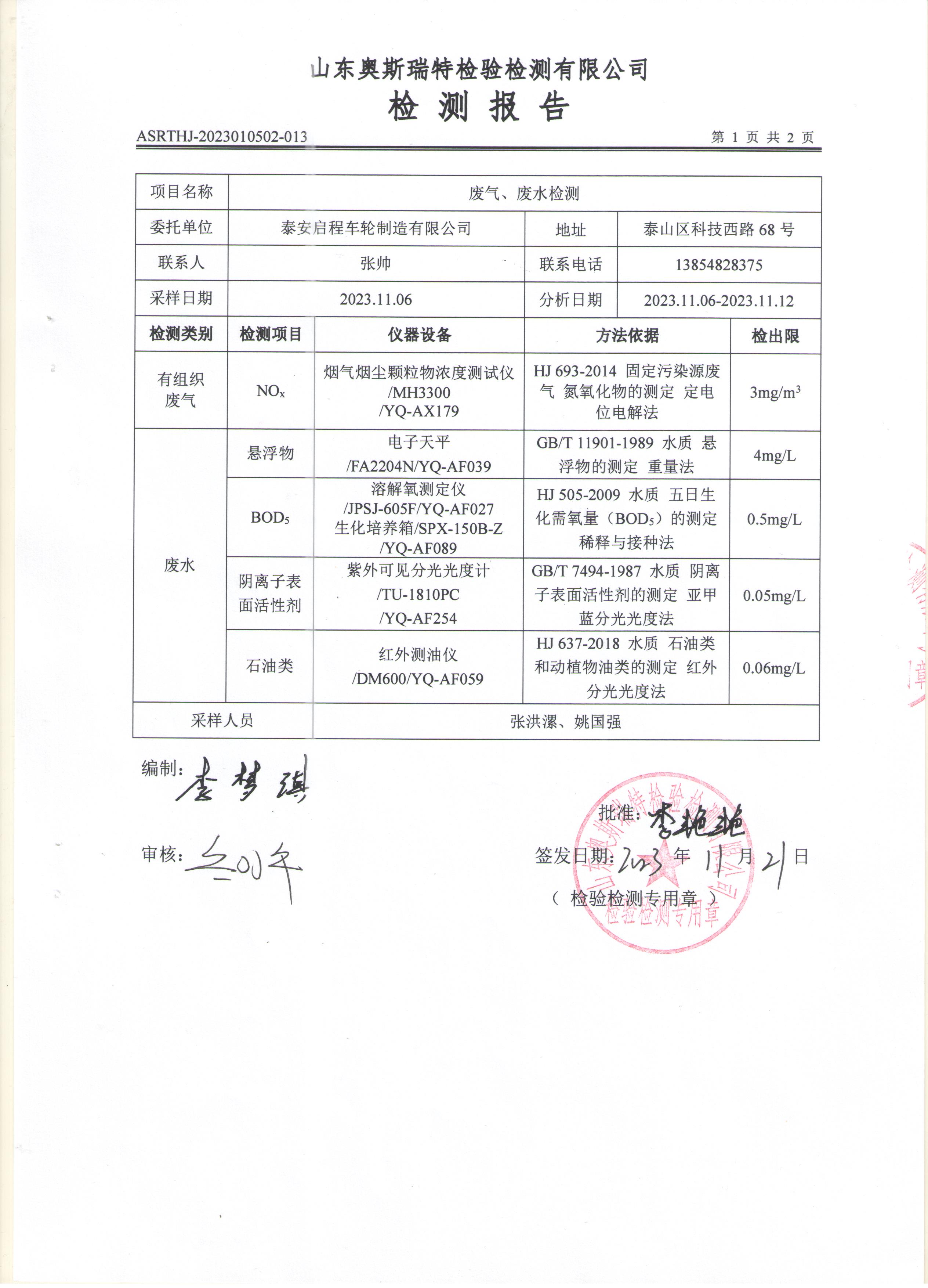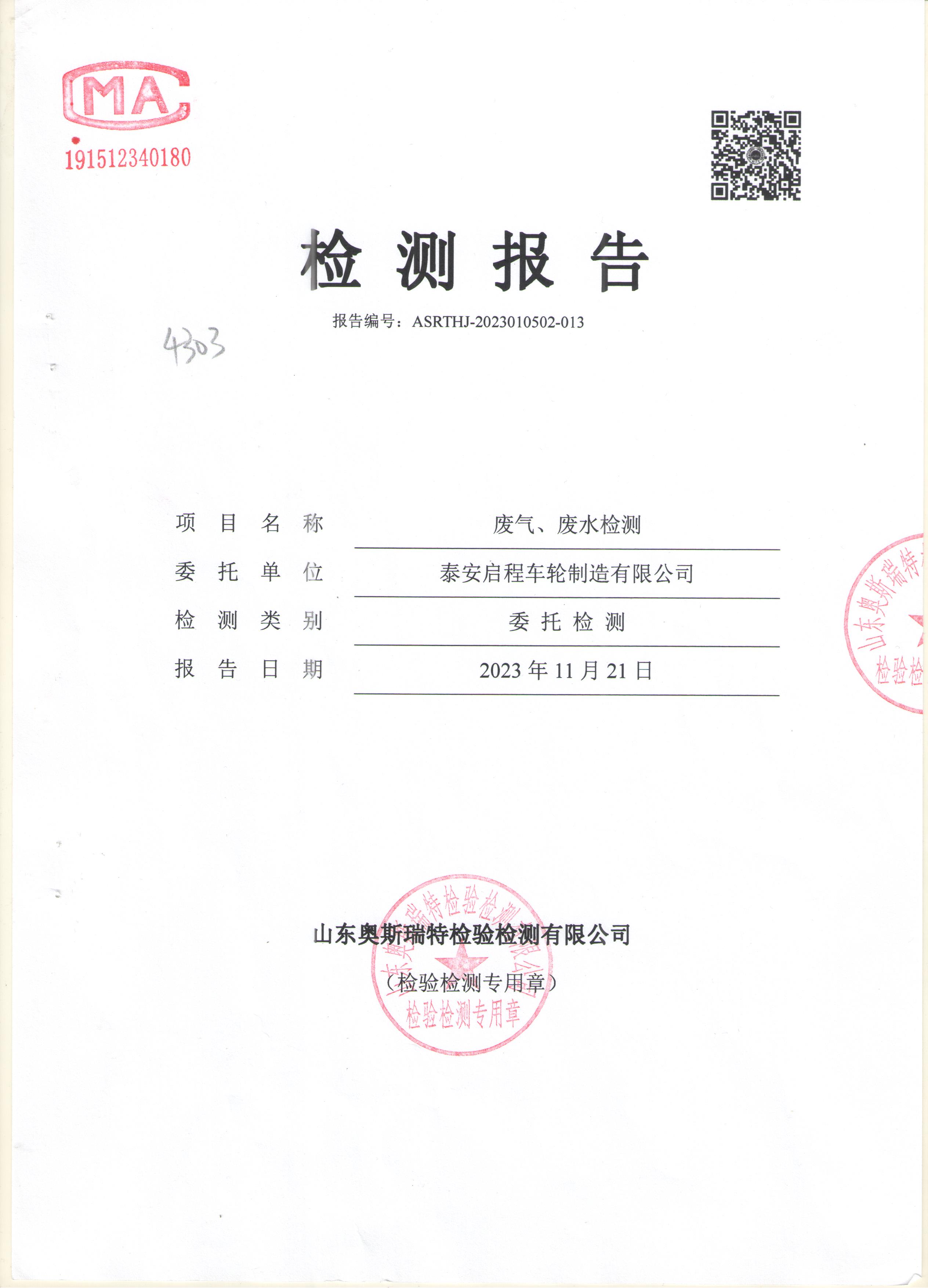 泰安啟程車(chē)輪制造有限公司2023年11月份環(huán)境污染物排放檢測(cè)報(bào)告